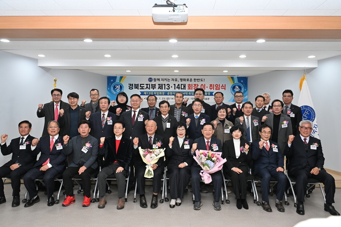 경북도지부는 1월 23일 칠곡군 가산면 다부동전적기념관 강당에서 제14대 이동영 회장 취임식을 개최했다. 공원식 회장 이임식을 겸한 이날 행사는 김성옥 총재 직무대리, 이철우 도지사를 비롯한 주요 기관단체장 및 이동영 취임 회장, 공원식 이임 회장, 전홍순 대구지부 회장, 윤준호 대전지부 회장, 권관희 충남지부 회장, 고광민 제주지부 회장 등 내‧외빈이 함께해 자리를 빛냈다.